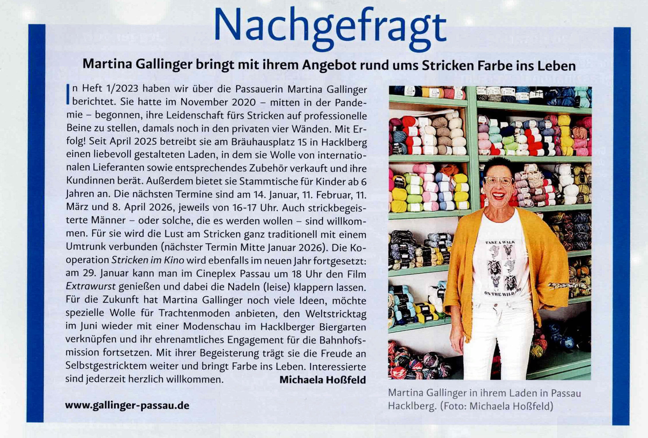 hier ein Artikel aus der Frauenbundzeitschrift 12-2024 über meinen Strickkurs "Seelenwärmer"
